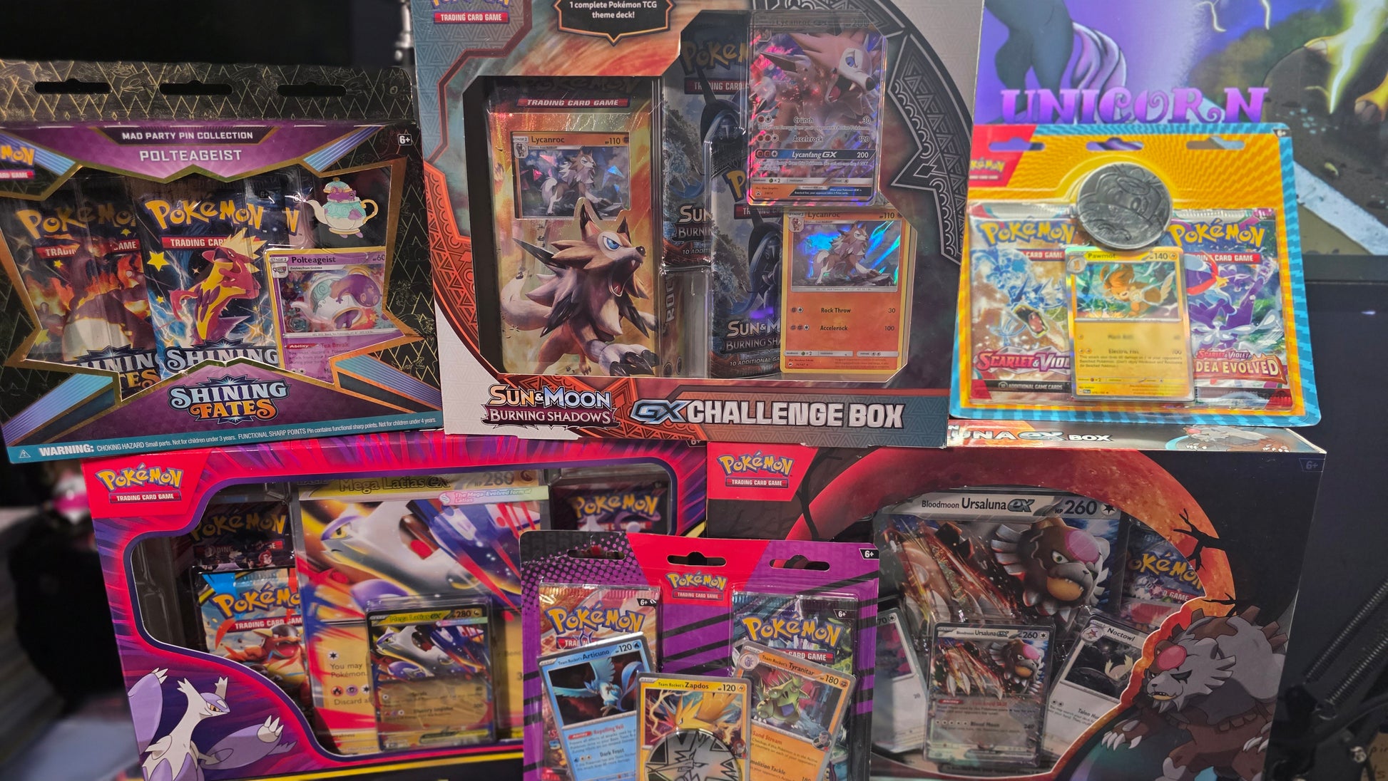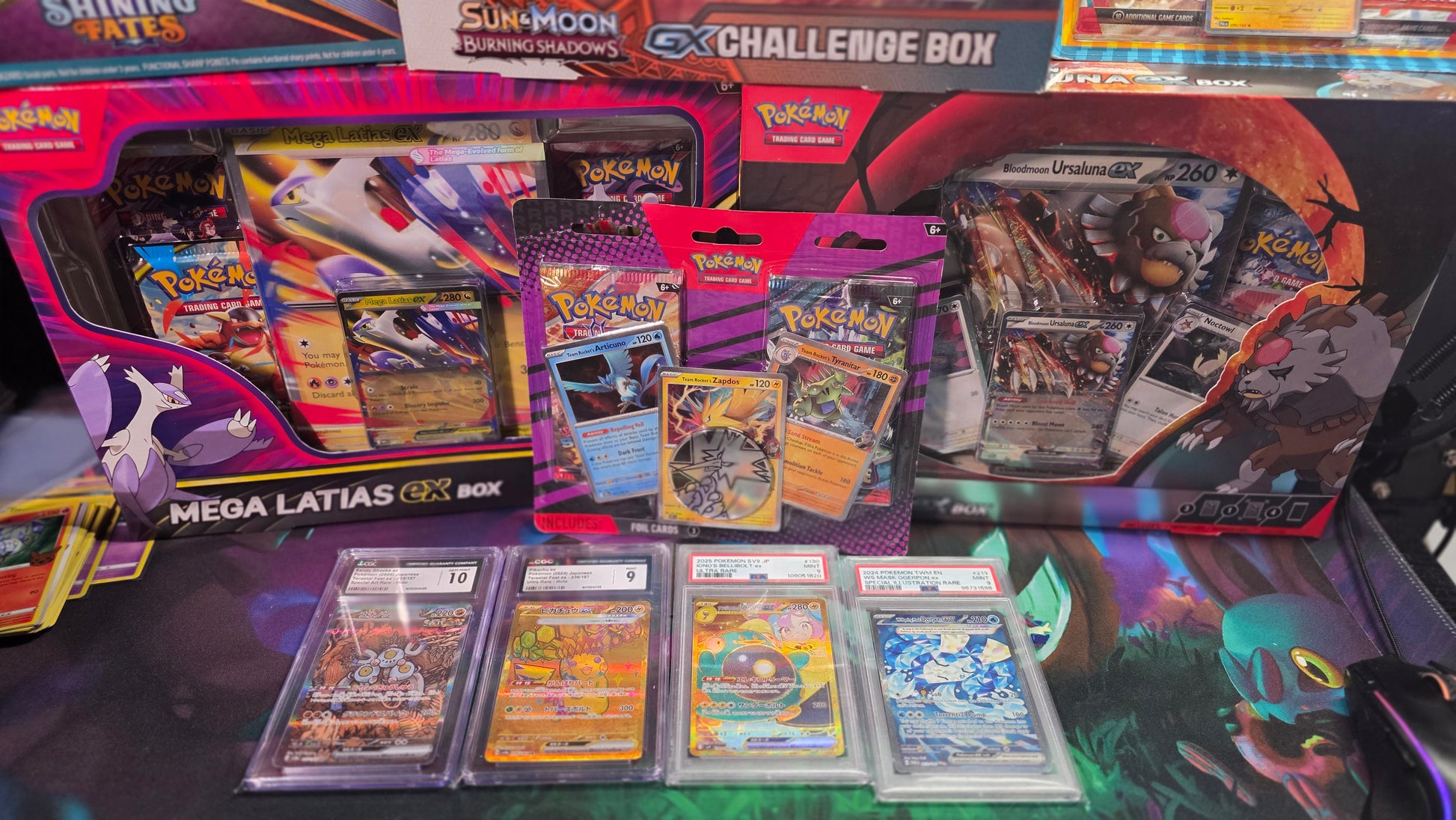 You'll get a random sealed product like packs of Journey Together, Mega Evolution, Stellar Crown, Vmax Climax, Dark Crystal Blaze (All bounty eligible!). PSA and CGC slabs. Some 2pk blisters, three collection boxes and the big chases: The Polteageist Pin Collection Box AND a SHINING LEGENDS PACK! Prizes can be below and above value. See pics for prizes!